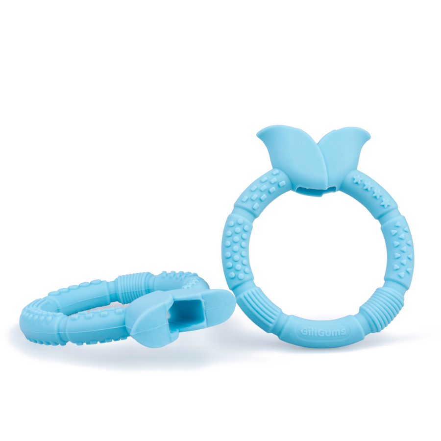 Błękitny gryzaczek będzie uroczym dodatkiem dla bobasa. Kształt gryzaka ułatwia małym rączkom chwytanie, a zróżnicowane faktury powierzchni oraz wypustki, pomogą w ząbkowaniu, delikatnie masując obolałe dziąsła.