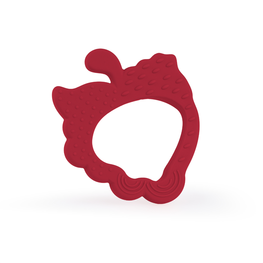 Soczyście czerwona truskaweczka przyniesie ulgę w ząbkowaniu, a jej energetyczny kolor wprawi malucha w pozytywny nastrój. Gryzak wykonany jest w 100% z bezpiecznego silikonu, dzięki czemu bez trudu utrzymasz go w czystości. Truskawkę zdobią wypustki, które podczas gryzienia delikatnie masują obolałe dziąsła malucha.