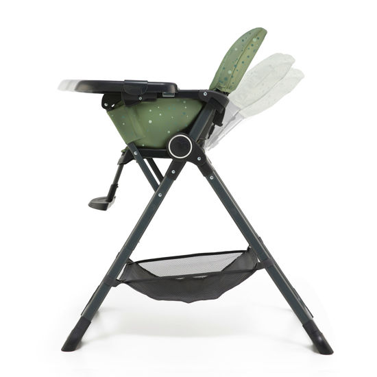 FOLDEE składa się do kompaktowych wymiarów, co pozwala na łatwy transport, np. na wakacje. Ma szeroki zakres regulacji, co pozwala dopasować krzesełko do wzrostu dziecka. Ma 3 pozycje oparcia i 2 pozycje podnóżka, dzięki czemu maluchowi będzie nie tylko wygodnie, ale także pozwoli mu przybrać prawidłową postawę podczas jedzenia. Dla zwiększenia komfortu jedzenia tackę możesz regulować w 3 zakresach od siedziska.