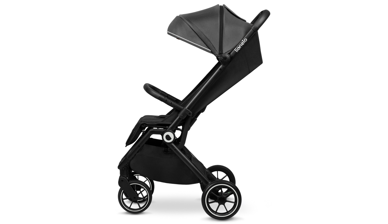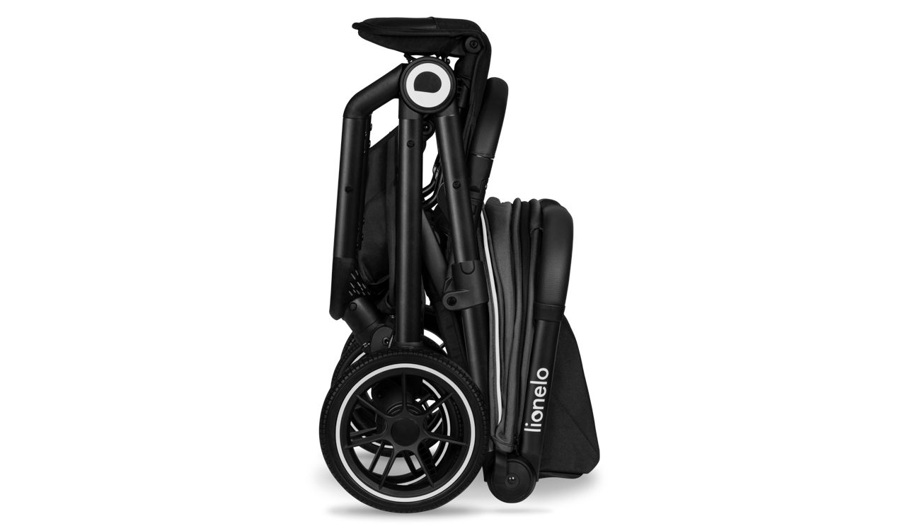 Wózek spacerowy Lionelo Cloe możesz w prosty sposób złożyć jedną ręką, lub skorzystać z systemu auto-folding – po naciśnięciu przycisku, wózek złoży się sam.