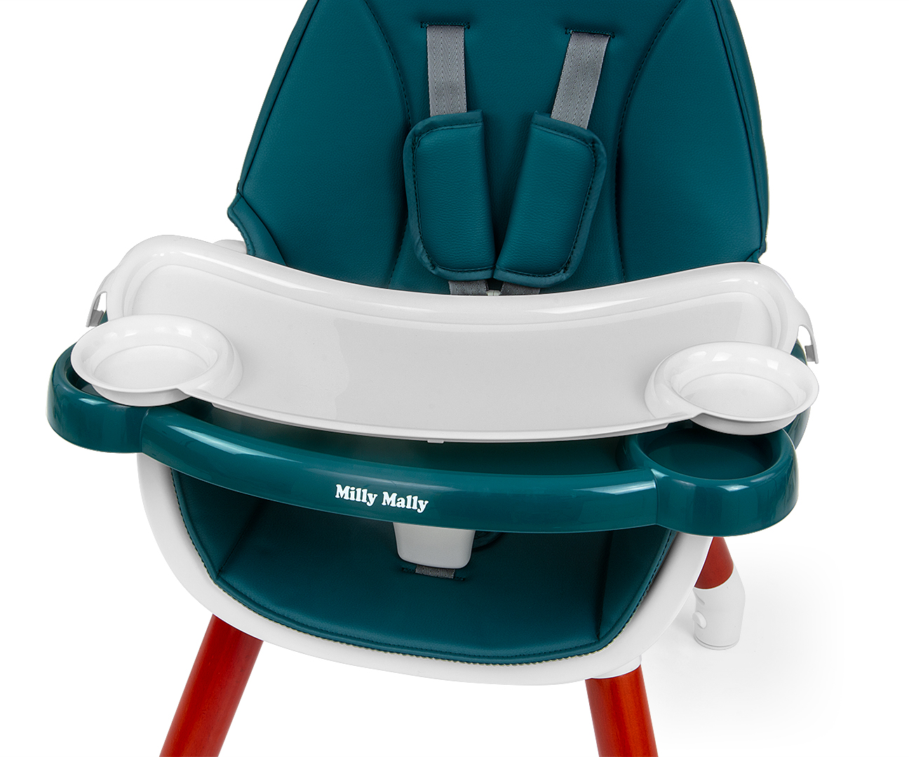 5-punktowe pasy bezpieczeństwa wyposażone w szerokie i miękkie osłonki na ramiona, zabezpieczają dziecko przed otarciami. Tapicerka krzesełka Malmo wykonana z ekoskóry jest odporna na zabrudzenia i łatwa w utrzymaniu czystości. Tacka posiada wgłębienie, które zapobiega zsunięciu się przedmiotów na niej umieszczonych.