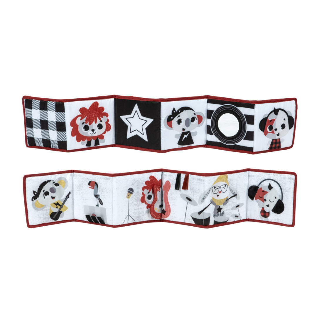 Kontrastująca czarno-biała strona została stworzona, aby już od narodzin wspierać wzrok dziecka. Kolorowa strona, z większą ilością detali, jest wyposażona w różnorodne elementy, które oferują stymulację zmysłu wzroku i dotyku starszego dziecka. Obie strony książeczki wspierają rozwój twojego rosnącego maluszka.